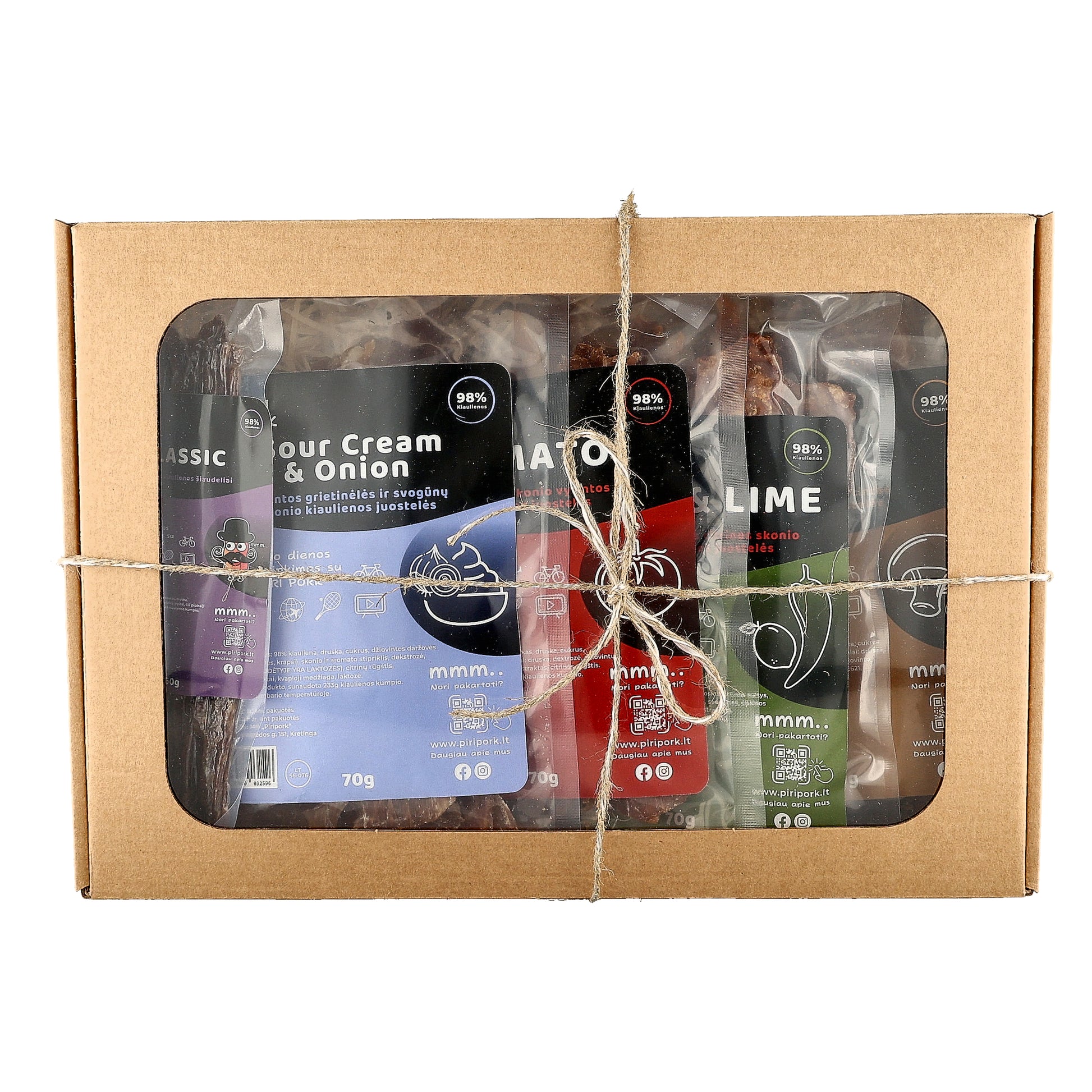- 1 pakelis Chilli & Lime vytintų kiaulienos juostelių