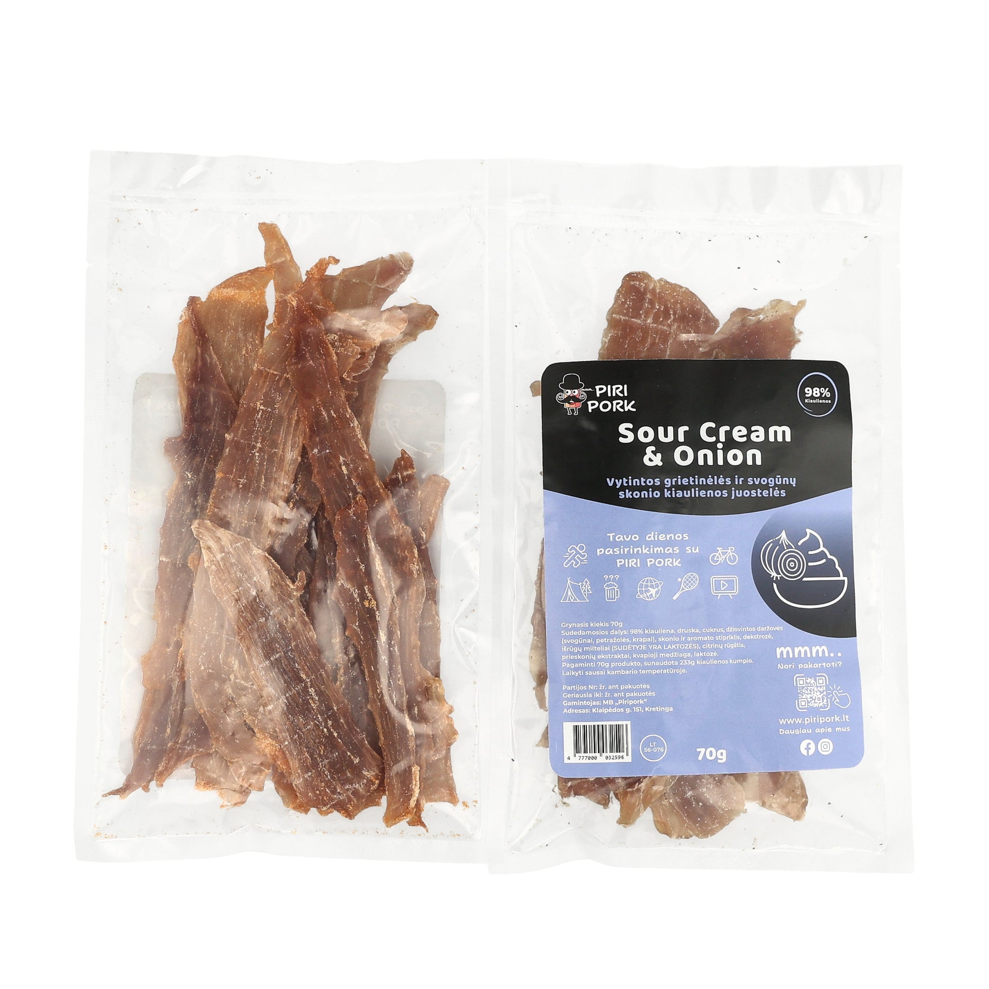 Grietinės ir svogūnų skonio vytintos kiaulienos juostelės